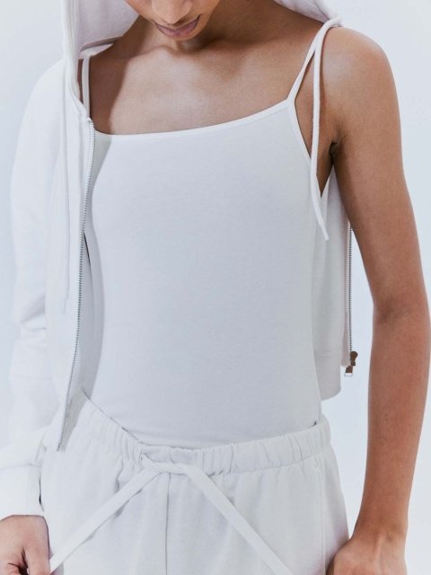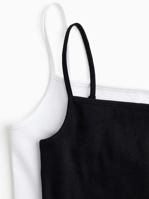 Short, fitted tops in soft cotton jersey with a square neckline and narrow, adjustable shoulder straps.