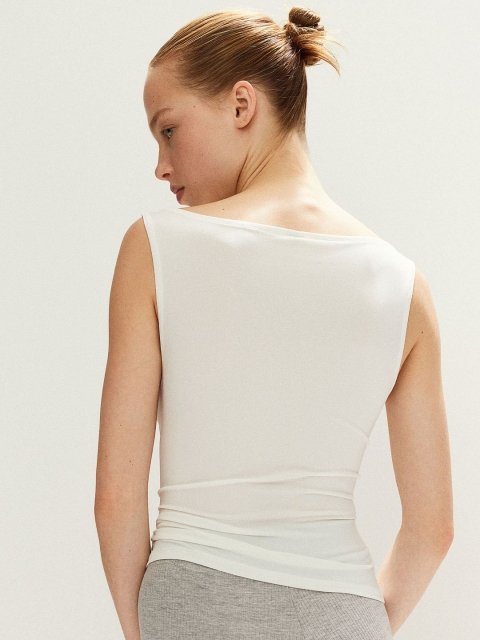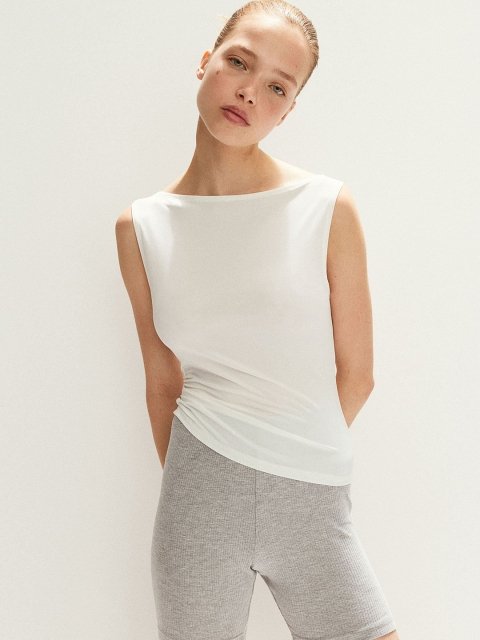 Short, fitted vest top in stretch jersey with a delicate boat neckline and a straight-cut hem.