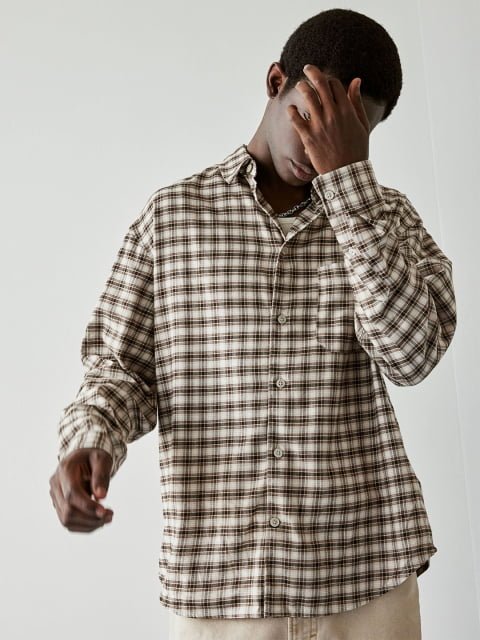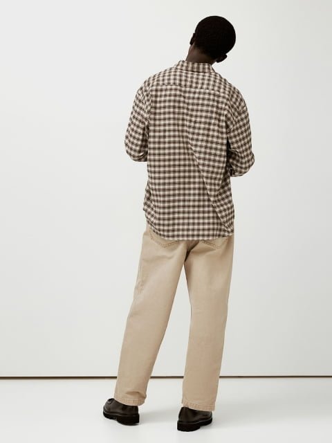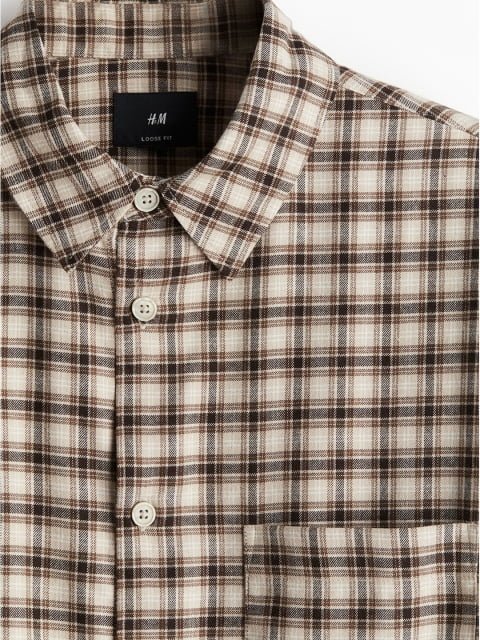 Shirt in soft flannel made from a cotton blend with a turn-down collar, classic front, yoke at the back and an open chest pocket. Long sleeves with buttoned cuffs and a sleeve placket with a link button, and a gently rounded hem. Loose fit for a generous but not oversized silhouette.