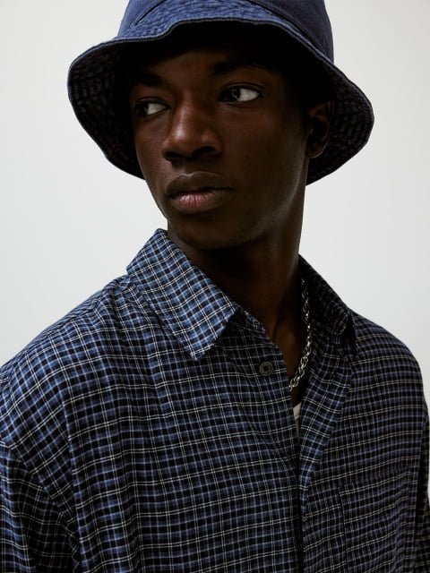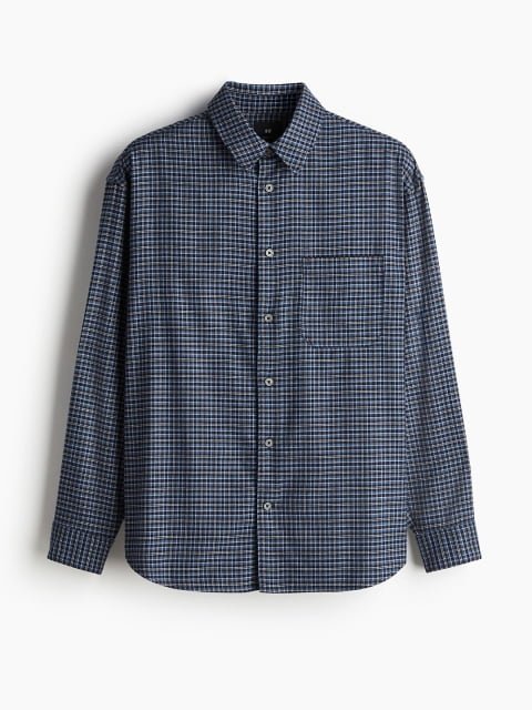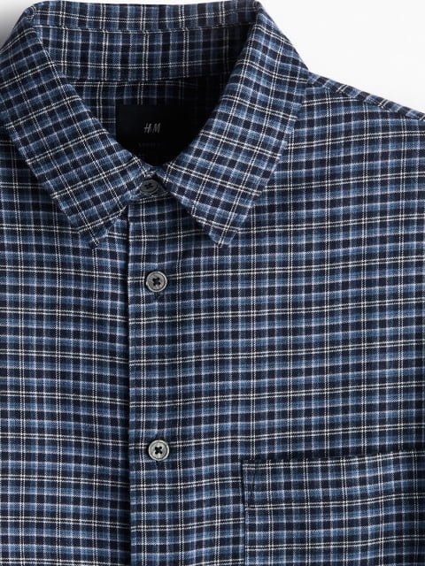 Shirt in soft flannel made from a cotton blend with a turn-down collar, classic front, yoke at the back and an open chest pocket. Long sleeves with buttoned cuffs and a sleeve placket with a link button, and a gently rounded hem. Loose fit for a generous but not oversized silhouette.