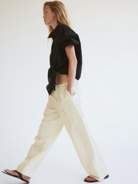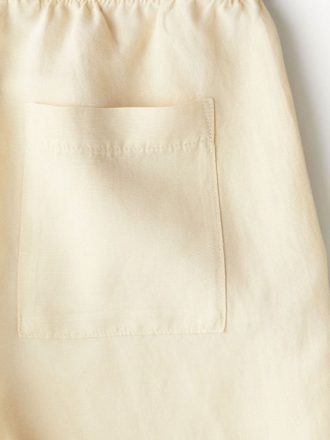 Loose-fit trousers in an airy weave made from a linen blend. Regular waist with covered elastication and a narrow drawstring, discreet side pockets, patch pockets at the back and straight legs.