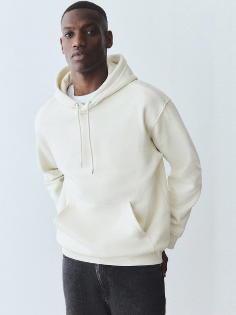 Hoodie in midweight sweatshirt fabric made from a cotton blend with a soft brushed inside. Jersey-lined, drawstring hood, dropped shoulders, long sleeves, a kangaroo pocket and wide ribbing at the cuffs and hem. Loose fit for a generous but not oversized silhouette.