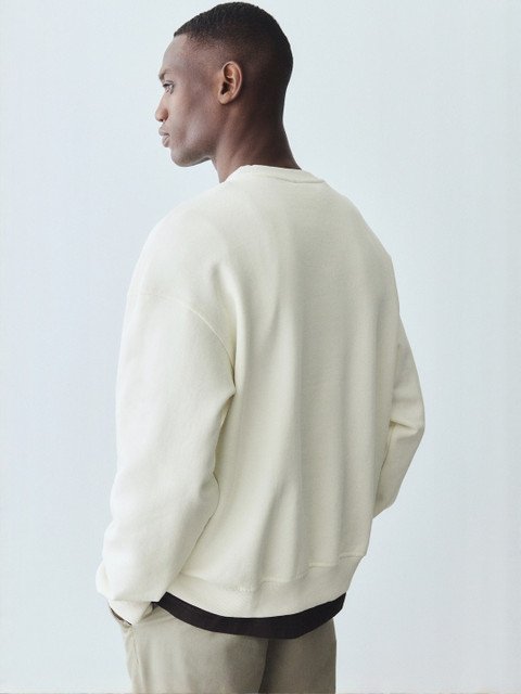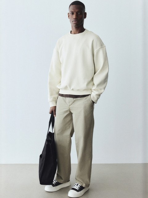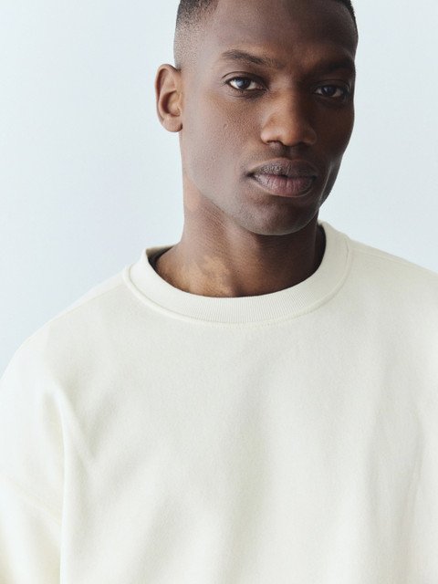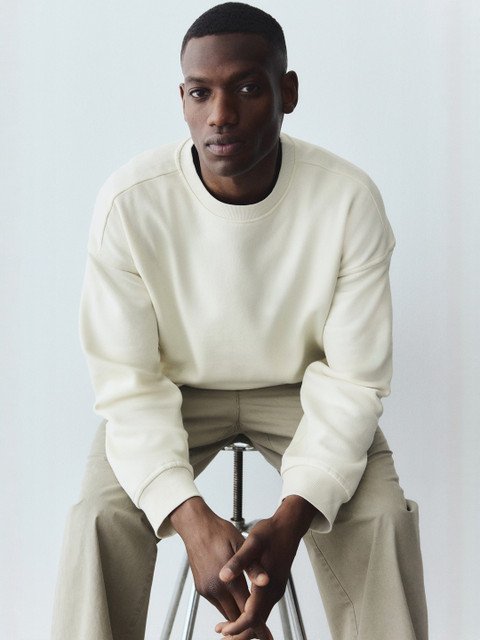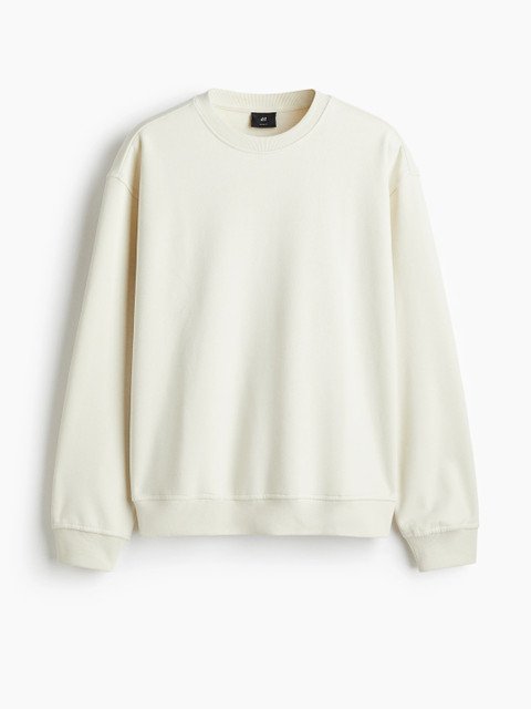 Top in midweight sweatshirt fabric made from a cotton blend with a soft brushed inside. Round, rib-trimmed neckline, dropped shoulders, long sleeves and wide ribbing at the cuffs and hem. Loose fit for a generous but not oversized silhouette.