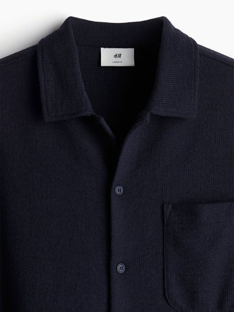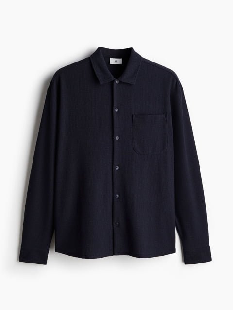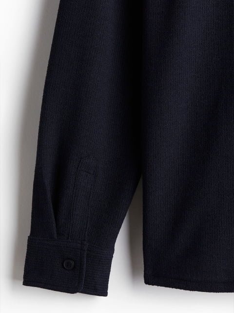 Shirt in a textured weave with a turn-down collar, French front, a yoke at the back and an open chest pocket. Long sleeves with buttoned cuffs and a sleeve placket with a link button. Loose fit for a generous but not oversized silhouette.