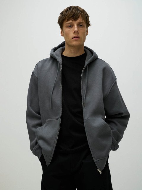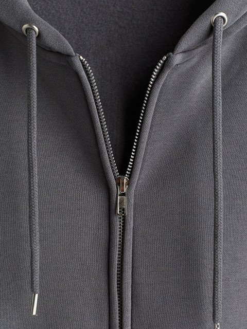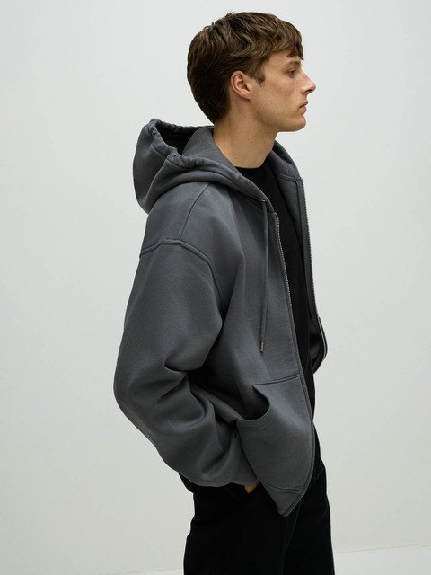Zip-through hoodie in midweight sweatshirt fabric with a soft brushed inside. Hood with a drawstring, zip down the front and front pockets. Dropped shoulders, long sleeves and ribbing at the cuffs and hem. Loose fit for a generous but not oversized silhouette.