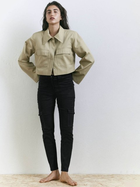 Ankle-length, slim-fit cargo trousers in twill made from a lyocell and cotton blend with skinny legs. High waist with a zip fly and button, patch front pockets, flap leg pockets and fake flap pockets at the back.