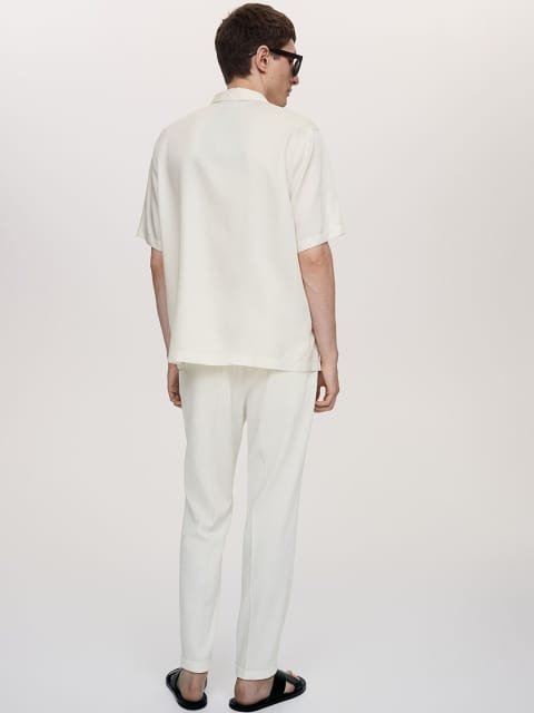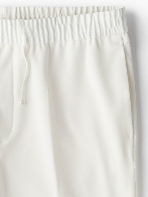 Ankle-length trousers in soft twill with an elasticated, drawstring waist, fake fly, pockets in the side seams and jetted back pockets. Legs with sewn-in creases and turn-ups at the hems. Slim fit that hugs the contours of your body, creating a fitted silhouette.