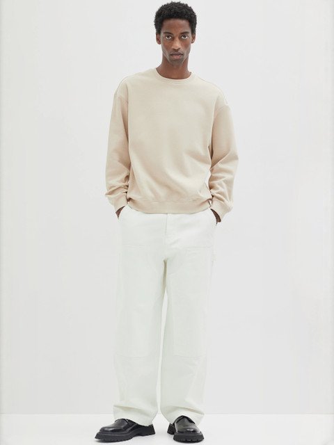 Tops in lightweight sweatshirt fabric made from a cotton blend with a soft brushed inside. Round, rib-trimmed neckline, dropped shoulders, long sleeves and wide ribbing at the cuffs and hem. Loose fit for a generous but not oversized silhouette.