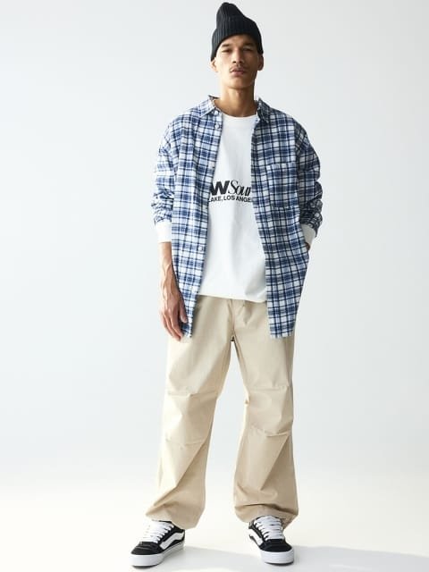 H&M Men Pure Cotton Loose Fit Parachute Trousers