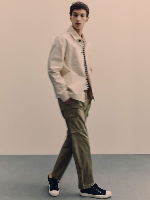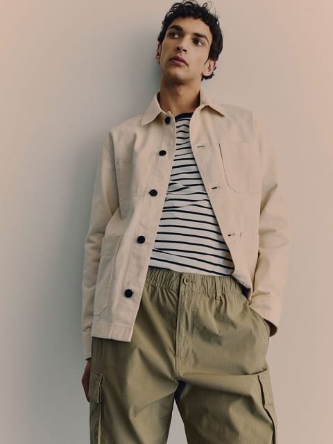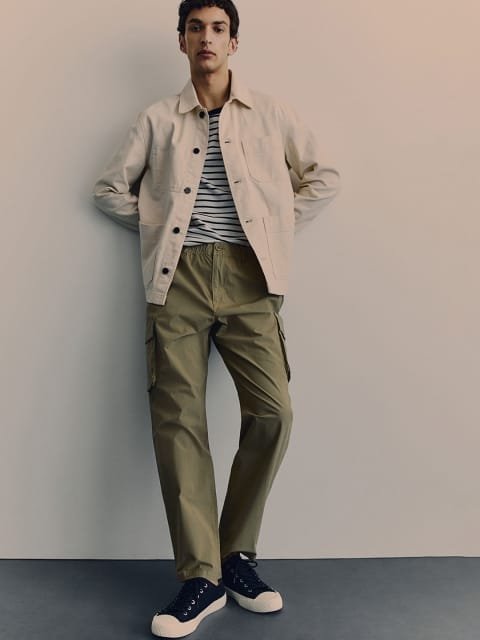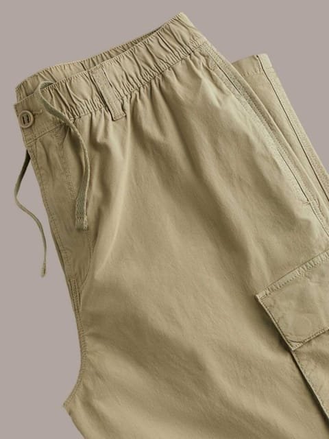 Cargo trousers in a cotton weave with covered elastication and a concealed drawstring at the waist, and a zip fly and button. Side pockets, flap leg pockets with concealed press-studs and welt back pockets. Regular fit for comfortable wear and a classic silhouette.