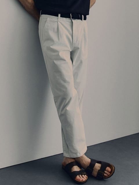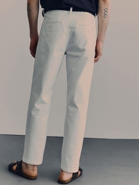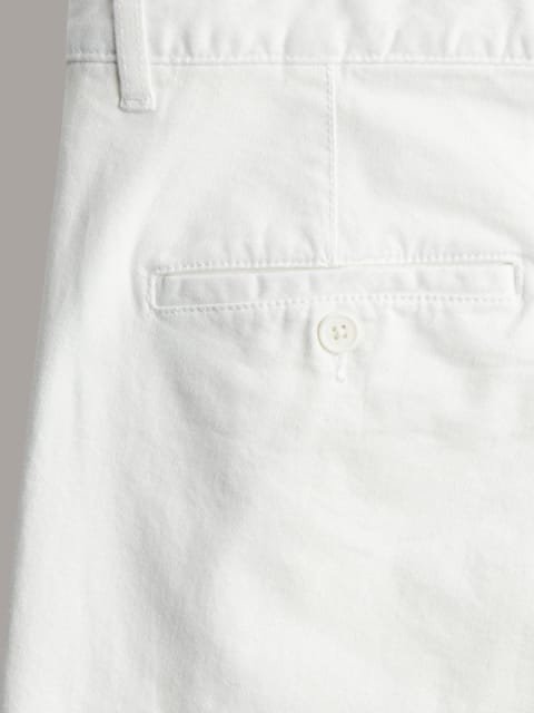 Cropped chinos in stretch cotton twill with a zip fly and button, side pockets and welt back pockets with a button. Regular fit for comfortable wear and a classic silhouette.