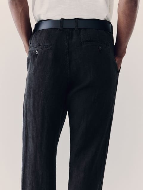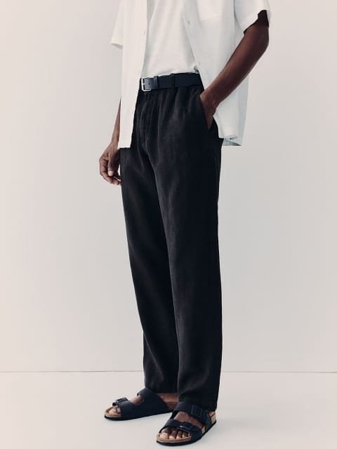 Trousers in airy linen with a zip fly and button and a concealed drawstring at the waist. Diagonal side pockets and welt back pockets with a button. Regular fit for comfortable wear and a classic silhouette. Fabric made from linen is breathable, beautiful both ironed and wrinkled, and softens over time.