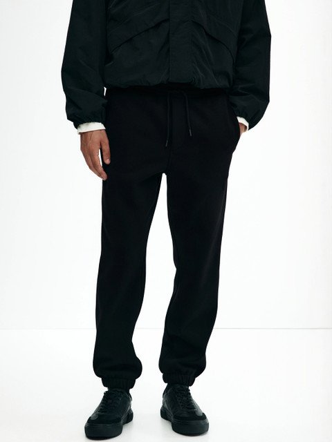 Sweatpants in sweatshirt fabric with a soft brushed inside. Covered elastication and a concealed drawstring at the waist, pockets in the side seams, open back pocket and tapered legs with ribbing at the hems. Regular fit for comfortable wear and a classic silhouette.