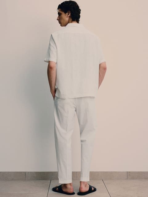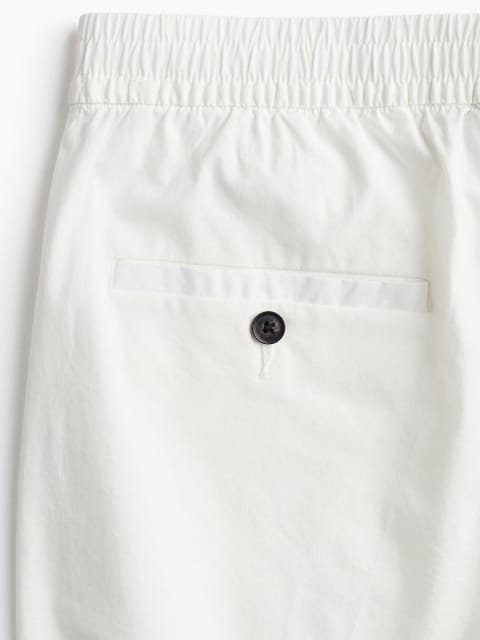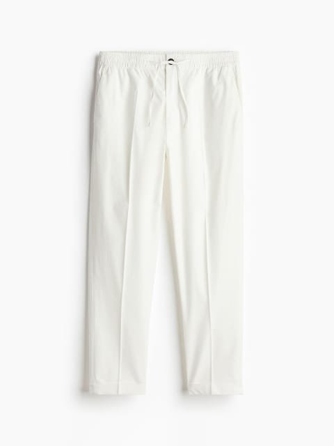 Ankle-length joggers in a cotton weave with covered elastication and a drawstring at the waist and a zip fly and button. Side pockets and welt back pockets with a button. Legs with creases front and back. Regular fit for comfortable wear and a classic silhouette.