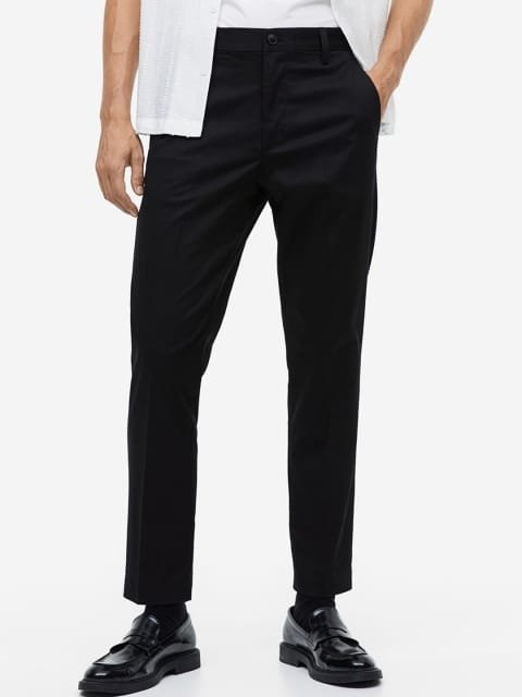 Regular-fit trousers in cotton twill with a zip fly and button, diagonal side pockets and jetted back pockets with a button.
