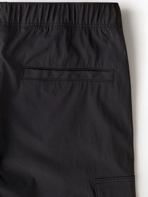 Joggers in stretch nylon with covered elastication and a drawstring at the waist. Slim fit with side pockets, flap leg pockets with concealed press-studs, and welt back pockets. Covered elastication at the hems.