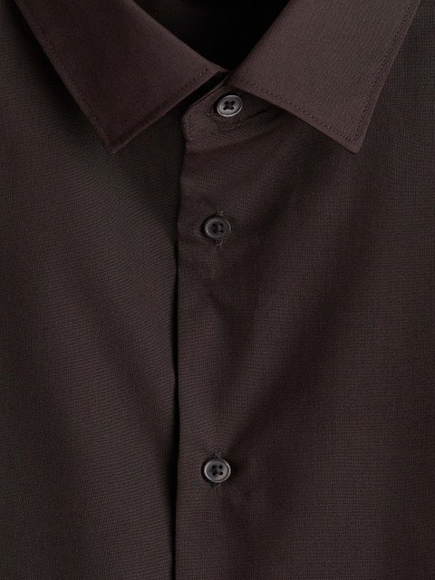 Shirt in woven fabric with an easy-iron finish. Turn-down collar, a classic front and a yoke at the back. Long sleeves with adjustable buttoning at the cuffs and a sleeve placket with a link button. Gently rounded hem. Slim fit that hugs the contours of your body, creating a fitted silhouette.