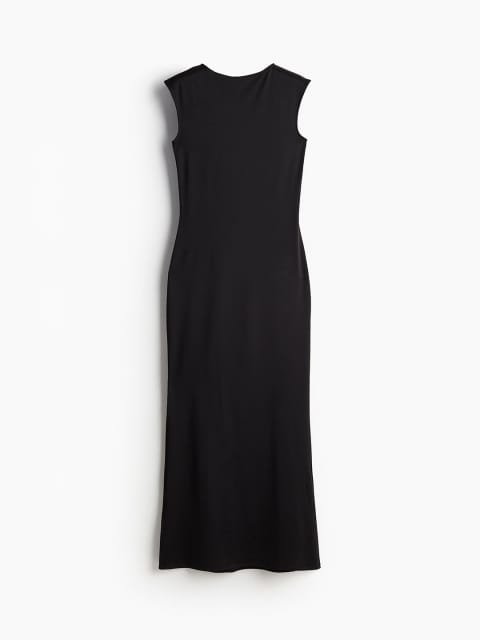 Long, fitted, sleeveless dress in stretch jersey with a round neckline, mermaid skirt and a straight-cut hem.