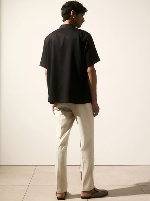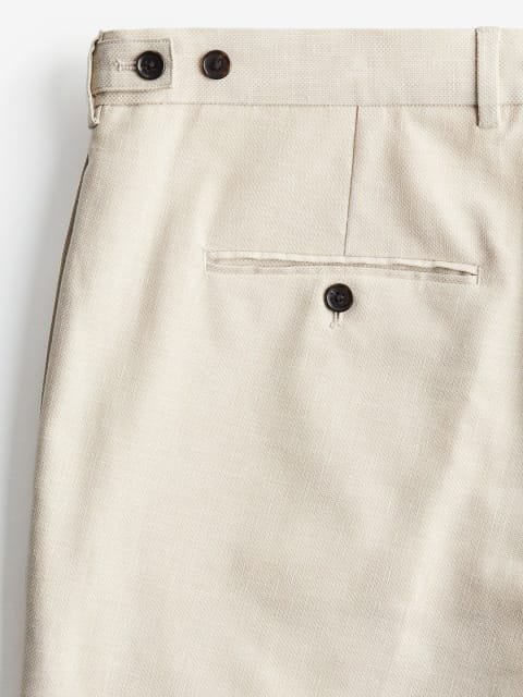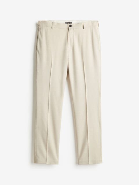 Suit trousers in a soft weave with a zip fly and button, side pockets and jetted back pockets with a button. Straight legs with creases at the front and back. Regular fit for comfortable wear and a classic silhouette.