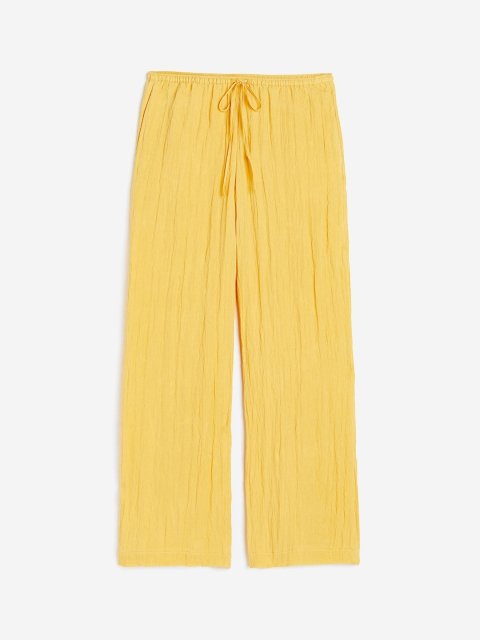 Loose-fit trousers in woven fabric with covered elastication and a drawstring at the waist. Discreet pockets in the side seams and straight legs.