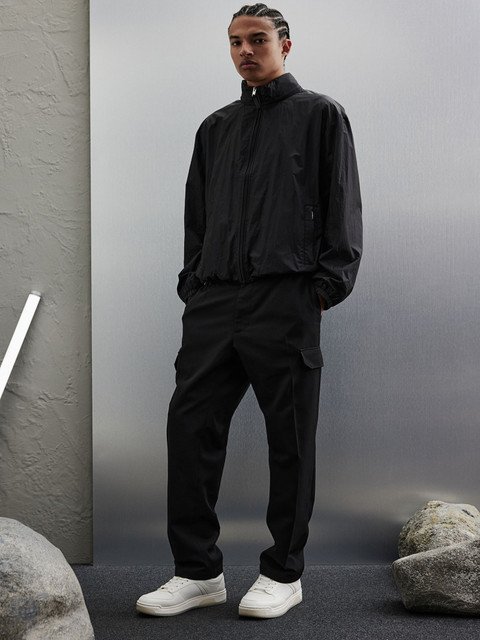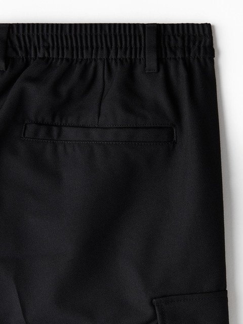Cargo trousers in soft twill with an elasticated waist and a zip fly with concealed press-studs. Diagonal side pockets, a welt back pocket, flap leg pockets and legs with creases. Regular fit for comfortable wear and a classic silhouette.
