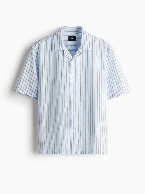 Short-sleeved shirt in an airy cotton weave with a resort collar, French front, yoke at the back and a straight-cut hem. Regular fit for comfortable wear and a classic silhouette.