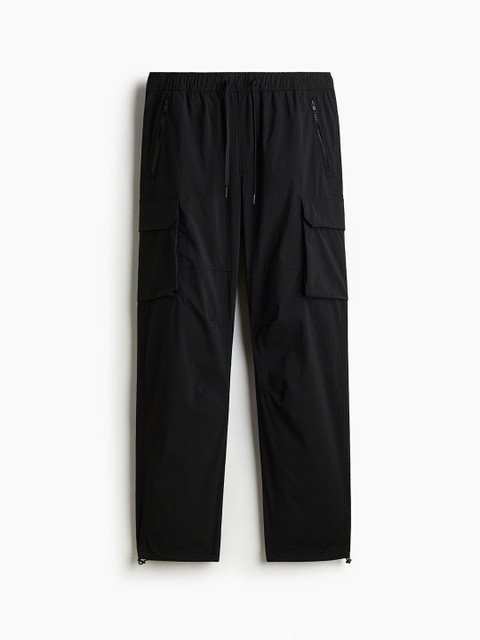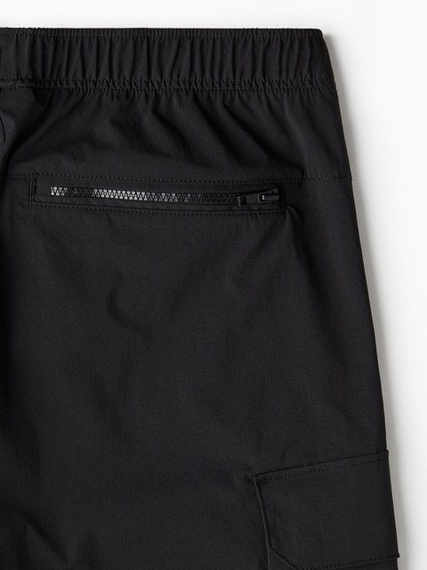 Cargo trousers in nylon with an elasticated, drawstring waist. Fake fly, zipped side pockets, zipped back pockets and leg pockets featuring a flap with concealed press-studs. Elasticated drawstring at the hems with a cord stopper. Regular fit for comfortable wear and a classic silhouette.