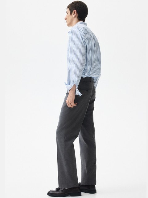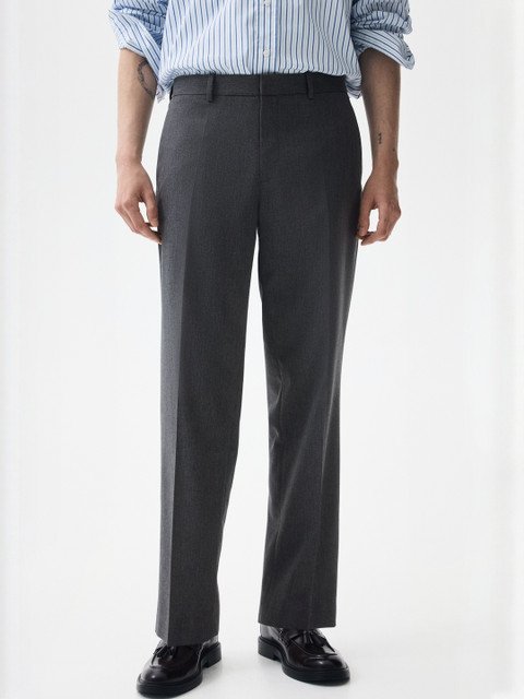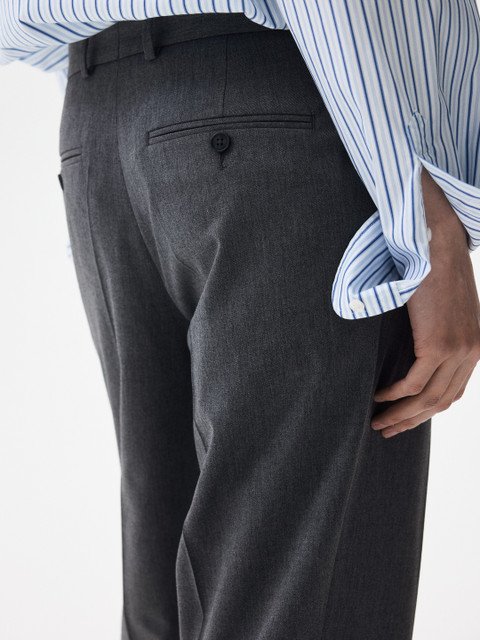 Tailored trousers in a soft weave with a zip fly, an extended waistband with a concealed button and hook-and-bar fastening, side pockets, jetted back pockets with a button and legs with creases. Regular fit for comfortable wear and a classic silhouette.