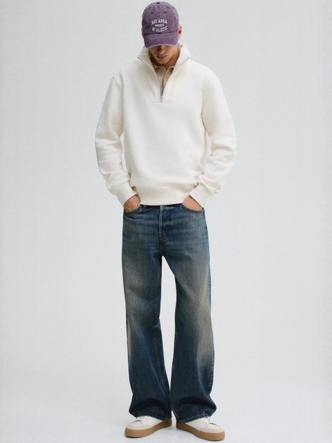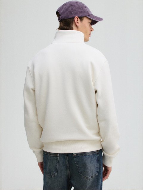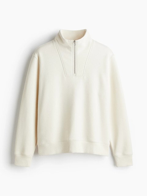 Top in heavyweight sweatshirt fabric with a soft brushed inside. Stand-up collar, a zip at the top, dropped shoulders and long sleeves. Ribbing at the cuffs and hem. Regular fit for comfortable wear and a classic silhouette.