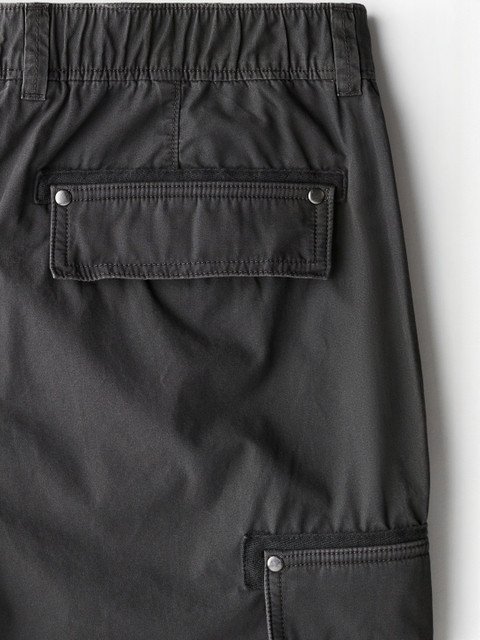 Cargo trousers in cotton poplin featuring covered elastication at the back of the waist, a zip fly with a press-stud, diagonal side pockets, flap back pockets and leg pockets with a flap and press-studs. Relaxed fit for a casual but not oversized silhouette.