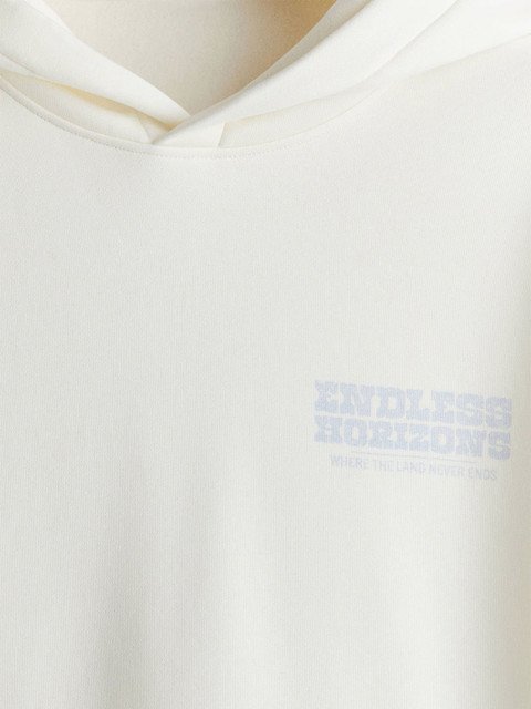 Hoodie in printed midweight sweatshirt fabric made from a cotton blend with a soft brushed inside. Wrapover hood, dropped shoulders, long sleeves, a kangaroo pocket and wide ribbing at the cuffs and hem. Relaxed fit for a generous but not oversized silhouette.
