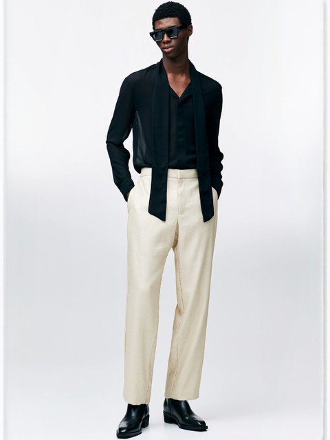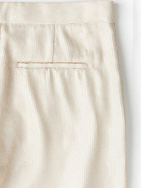 Trousers in a soft weave fully adorned with sequins featuring a zip fly and waistband with a button and hook-and-bar fastener. Sidepockets, jetted back pockets and legs with creases. Relaxed fit for a casual but not oversized silhouette.