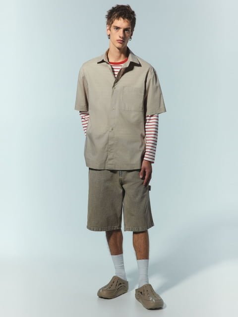 Relaxed-fit shirt in a cotton weave with a turn-down collar, classic front and a yoke at the back. Open chest pocket, short sleeves and a straight-cut hem.