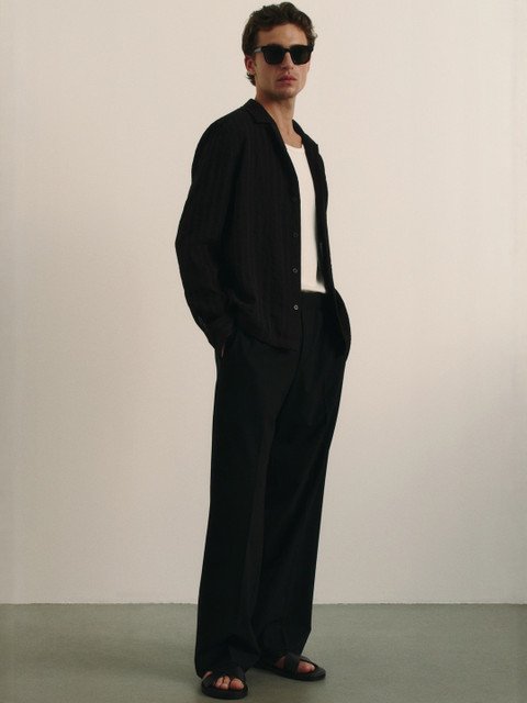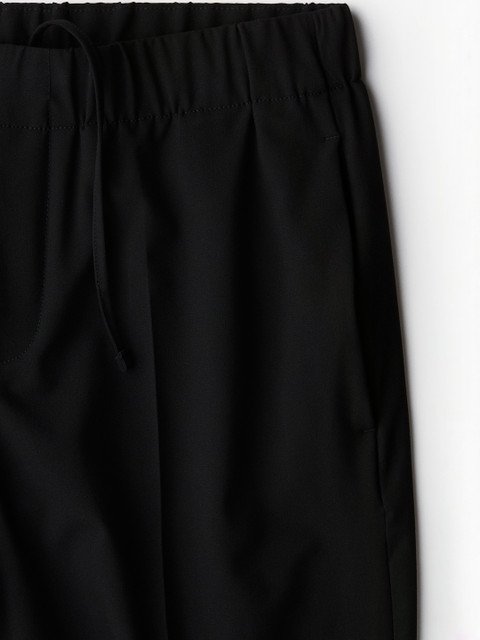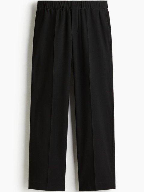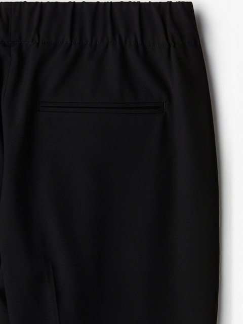 Trousers in a soft weave with covered elastication and a concealed drawstring at the waist, a fake fly, pockets in the side seams and jetted back pockets. Legs with creases. Relaxed fit for a casual but not oversized silhouette.