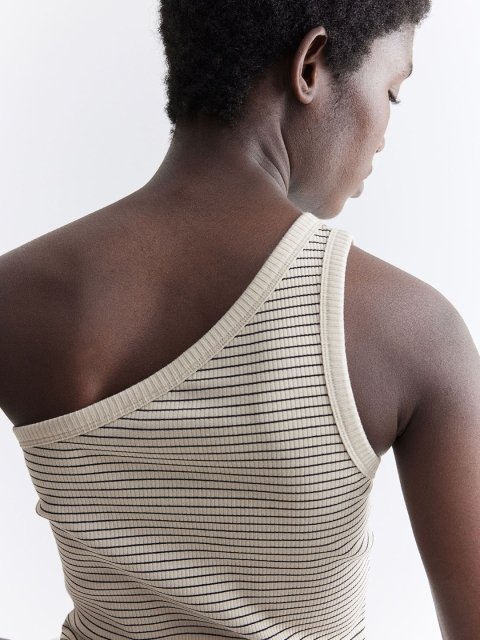 Fitted, sleeveless top in soft, ribbed jersey with an asymmetric neckline and one wide shoulder strap.