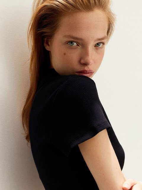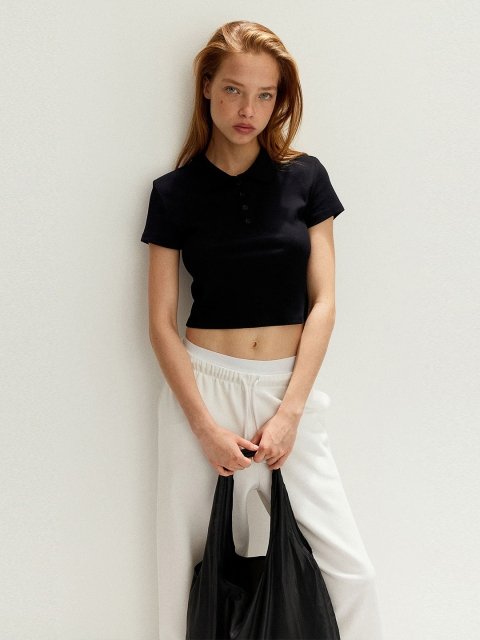 Short, fitted polo shirt in ribbed cotton jersey with a collar, button placket and short sleeves.