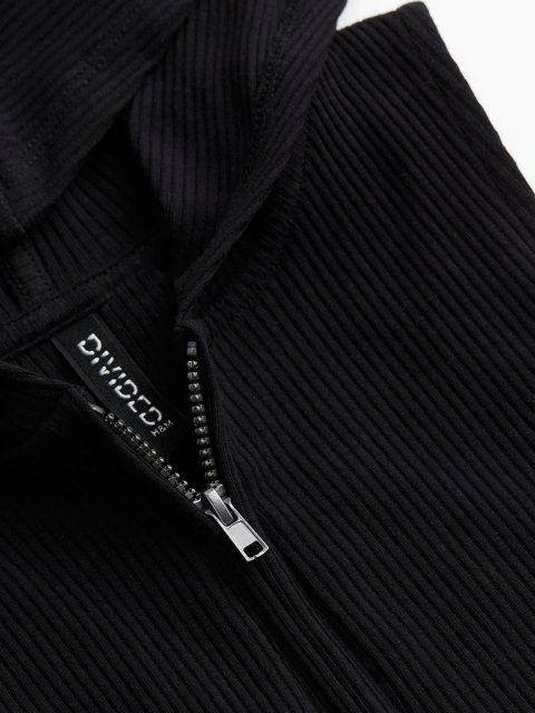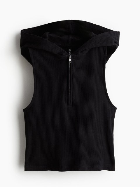 Cropped, fitted, sleeveless hoodie in ribbed cotton jersey with a hood, zip at the top and a straight-cut hem.