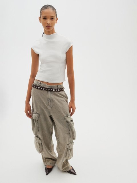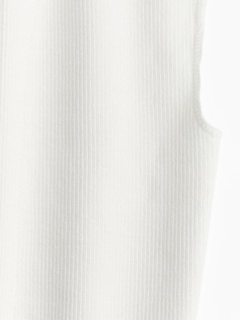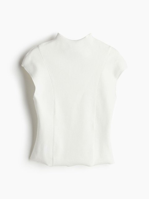 Short, fitted top in ribbed cotton jersey with decorative flatlock seams at the front. Turtle neck, cap sleeves and an overlocked hem.