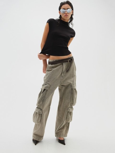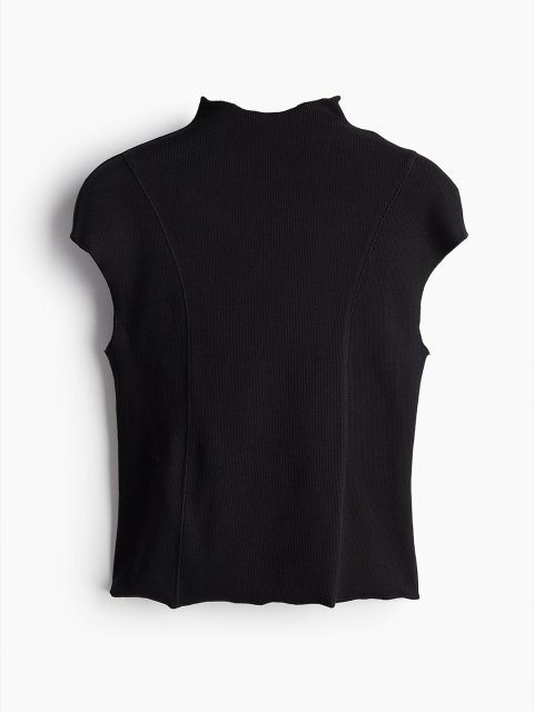Short, fitted top in ribbed cotton jersey with decorative flatlock seams at the front. Turtle neck, cap sleeves and an overlocked hem.