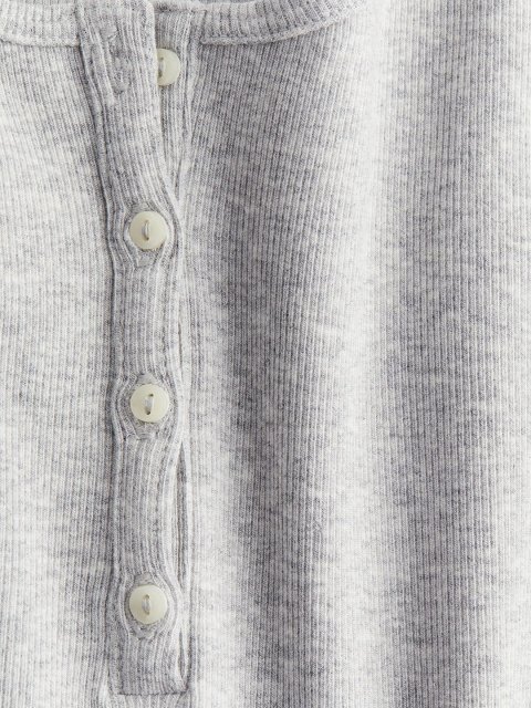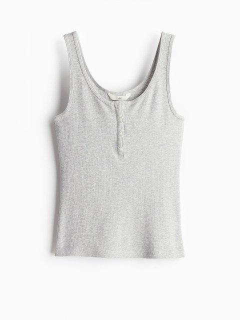 Fitted vest top in ribbed jersey with wide shoulder straps and a deep, round neckline with a button placket at the front.