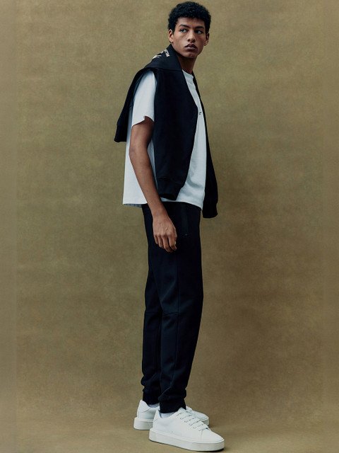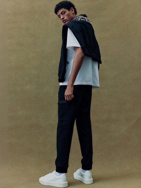 Cargo joggers in heavyweight sweatshirt fabric with an elasticated, drawstring waist, zipped side pockets, a zipped back pocket and a zipped leg pocket. Tapered legs with a wide, ribbed trim at the hems. Slim fit that hugs the contours of your body, creating a fitted silhouette.