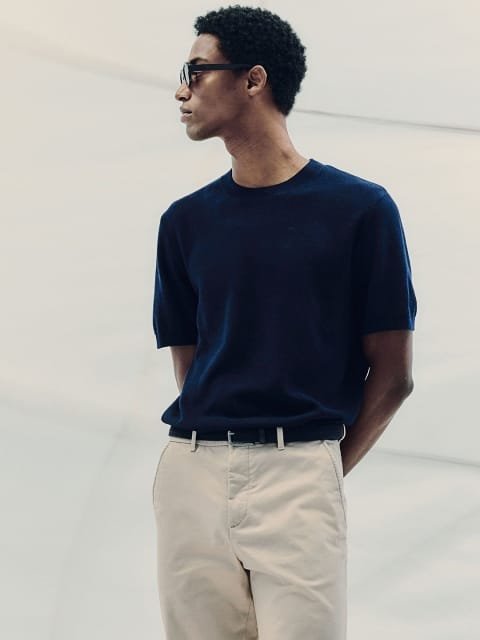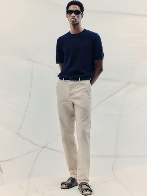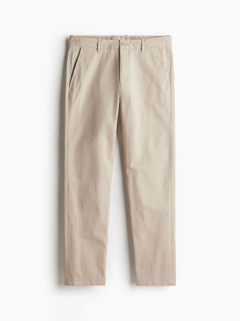 Chinos in stretch cotton twill with a zip fly and button, diagonal side pockets and welt back pockets with a button. Slim fit that hugs the contours of your body, creating a fitted silhouette.