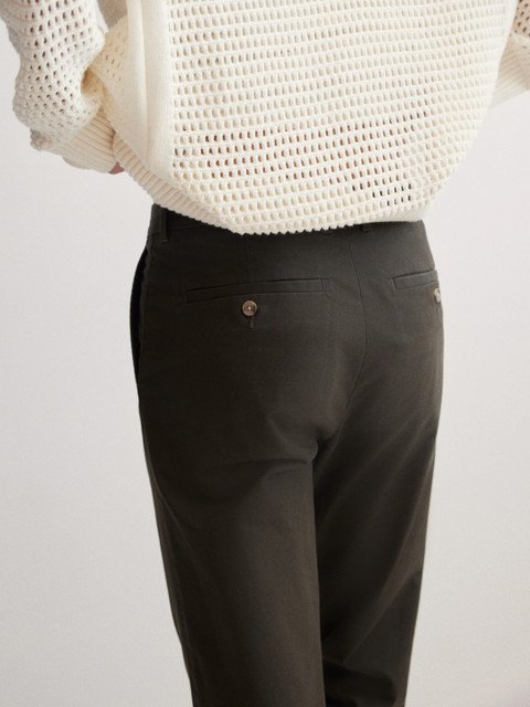 Chinos in stretch cotton twill with a zip fly and button, diagonal side pockets and welt back pockets with a button. Slim fit that hugs the contours of your body, creating a fitted silhouette.