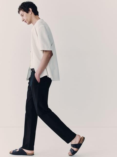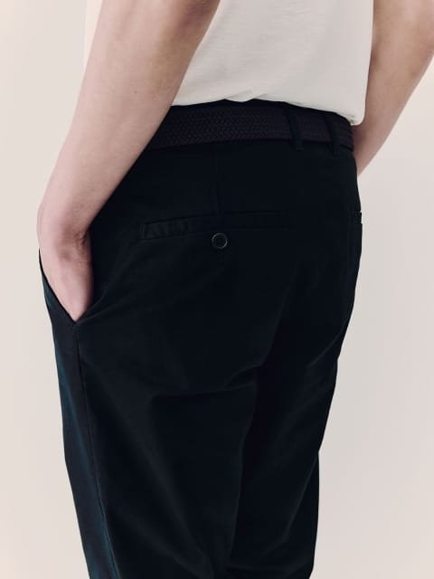 Chinos in stretch cotton twill with a zip fly and button, diagonal side pockets and welt back pockets with a button. Slim fit that hugs the contours of your body, creating a fitted silhouette.