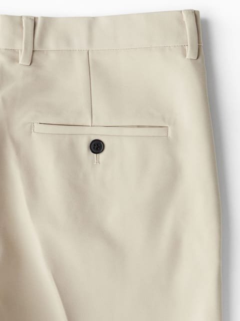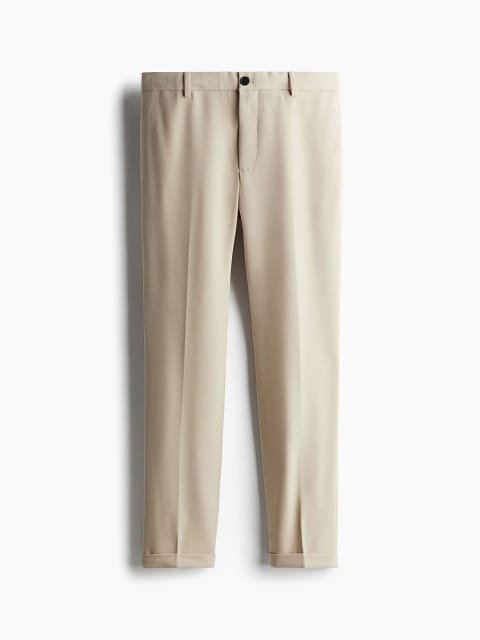 Ankle-length trousers in a stretch weave with a zip fly and button, side pockets and welt back pockets with a button. Legs with creases and turn-ups at the hems. Slim fit that hugs the contours of your body, creating a fitted silhouette.
