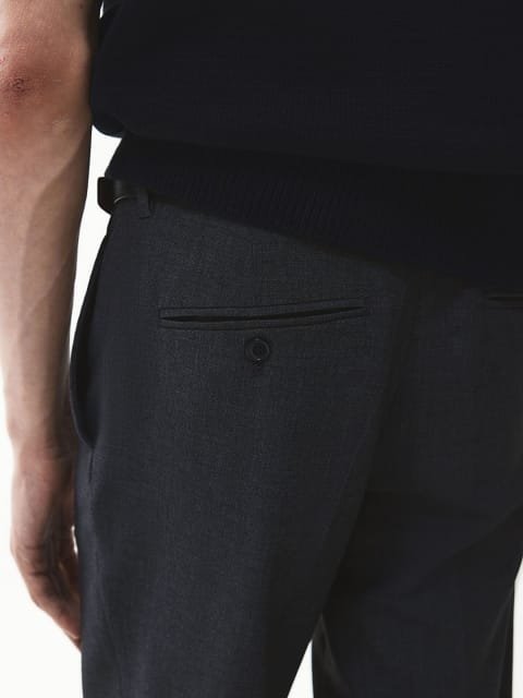 Suit trousers in a soft weave with a zip fly, an extended waistband with a button, side pockets, jetted back pockets with a button and legs with creases. Regular fit for comfortable wear and a classic silhouette.