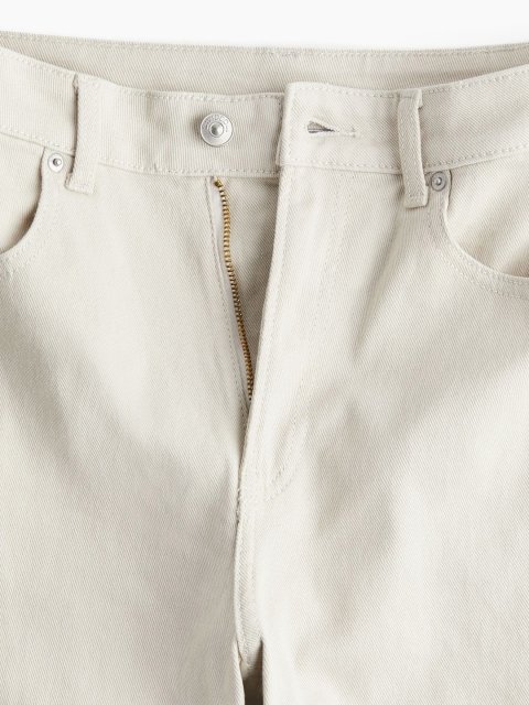 Trousers in cotton twill with a high waist, zip fly and button, front and back pockets and wide, straight legs.