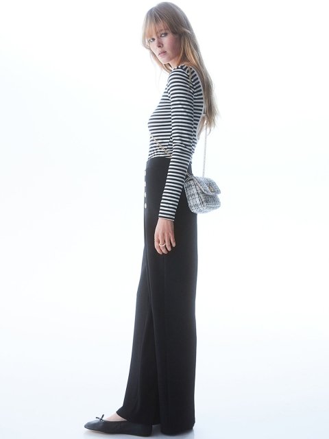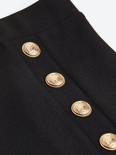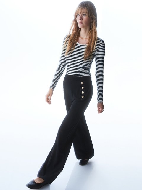 Trousers in heavy jersey. High waist with concealed elastication, decorative buttons at the front and wide, straight legs.