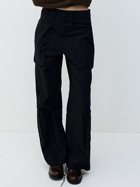 Cargo trousers in a soft cotton weave with patch front and leg pockets. High waist with a zip fly and button and straight legs with a pleat at the knees to create added volume.