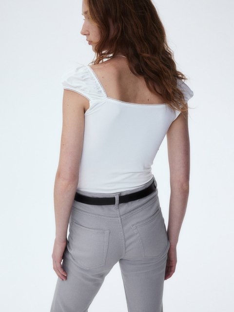 Legs with flared hems.